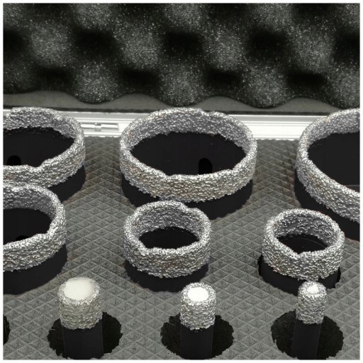 Diament w otwornicach FALONTECH osadzony jest metodą lutowania próżniowego. Oznacza to, że drobiny diamentu zatopione są w materiale. Nie są to otwornice pokryte diamentem tylko z wierzchu.