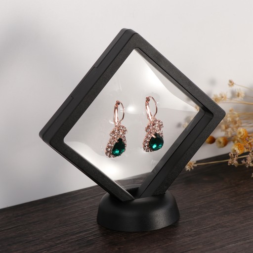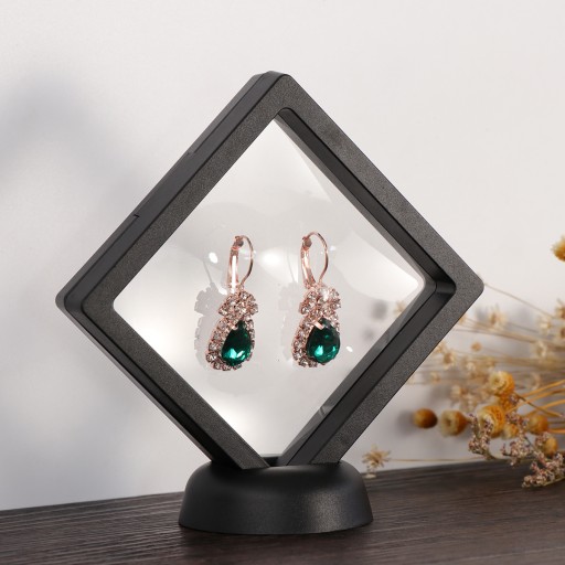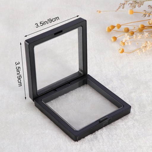 ✅1 x 3D pływająca ramka Shadow Box gablota pudełko na monety gablota na biżuterię z okrągłą podstawą 9x9cm (czarna)