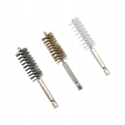 - 12 mosiężnych szczotek: Ø 8 - 9 - 10 - 11 - 12 - 13 - 14 - 15 - 16 - 17 - 18 - 19 mm