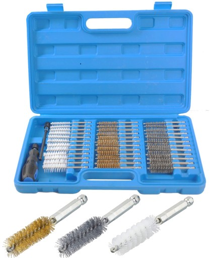 Opis produktu: Zestaw 38 szczotek do czyszczenia o rożnej twardości.