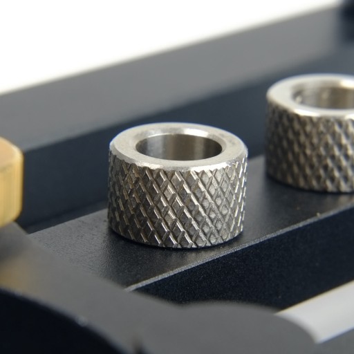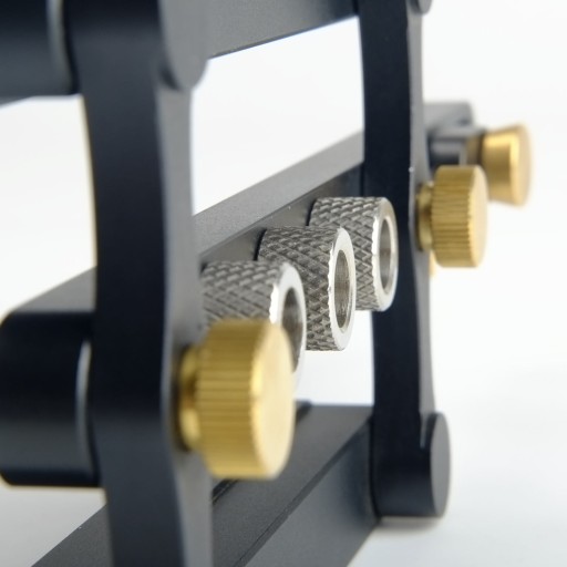 Kołkownica wykonana jest ze stopu aluminium. Tuleje są ze stali, a pokrętła i kołek dystansowy z mosiądzu. Całość jest bardzo starannie wykonane i posłuży bezproblemowo wiele lat.