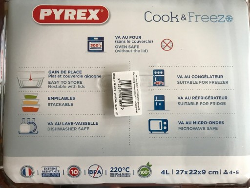 Doskonale nadaje się do pieczenia (bez pokrywki), podgrzewania w kuchence mikrofalowej, przechowywania i zamrażania żywności.