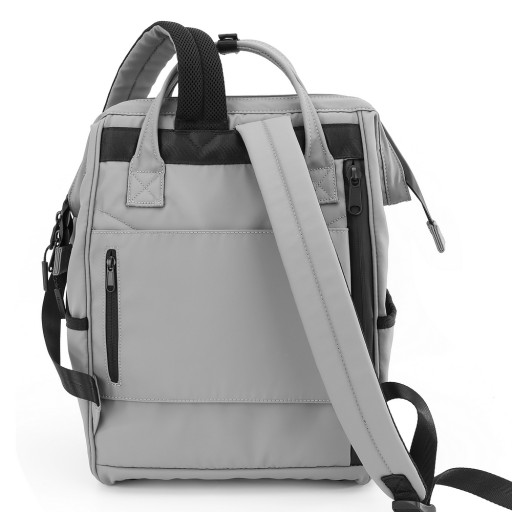 Stylowy plecak marki Himawari o symbolu 1884, który pomieści bardzo dużo książek oraz laptopa w rozmiarze do 16,4. Plecak został wykonany z bardzo wytrzymałego i wodoodpornego materiału – nylonu powlekanego PVC, który zapewnia zwiększoną odporność na warunki atmosferyczne. W główny rant plecaka zostało wszyte druciane wzmocnienie na wzór torby lekarskiej, dzięki któremu po otwarciu plecak jest sztywny, a Ty będziesz mieć bardzo łatwy dostęp do wszystkich rzeczy w środku. W głównej, bardzo pojemnej komorze plecaka znajdują się: miękka kieszeń na laptopa w rozmiarze do 16,4, siatkowa kieszonka na drobiazgi, boczna kieszeń z gumką na butelkę lub powerbanka oraz sporo miejsca na rzeczy. Komora ta zamykana jest na wodoodporny zamek z podwójnym suwakiem w kolorze czarnym. Z przodu plecaka znajduje się szeroka kieszeń na podręczne rzeczy z wodoodpornym zamkiem. Po bokach plecaka znajdują się duże kieszenie na parasolkę lub napój. Po lewej stronie plecaka umieszczono zewnętrzne gniazdo USB, dzięki czemu nie ma konieczności wyciągania power banka z plecaka, aby naładować telefon lub inne przenośne urządzenie. Z tyłu plecaka znajduje się szeroki pas materiału, dzięki któremu można założyć plecak na rączkę torby lotniczej, a na nim umieszczono bezpieczną kieszeń na portfel lub telefon. Szelki plecaka są wyłożone sprężystą gąbką, aby plecak był wygodny w noszeniu. Plecak posiada dwa uchwyty, które można spiąć ze sobą skórzaną opaską i przenosić plecak jak torbę - w ręce. Jest to bardzo przydatna funkcja, która świetnie sprawdzi się np. podczas tłoku w autobusie, tramwaju czy w kolejce. Bardzo dobra jakość i funkcjonalność tego modelu sprawia, że jest to doskonały plecak do pracy, do szkoły, jak i na krótkie podróże.
