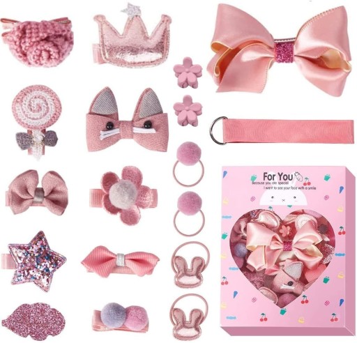 Zestaw ozdób dla dziewczynek - Piękne spinki do włosów i gumki
