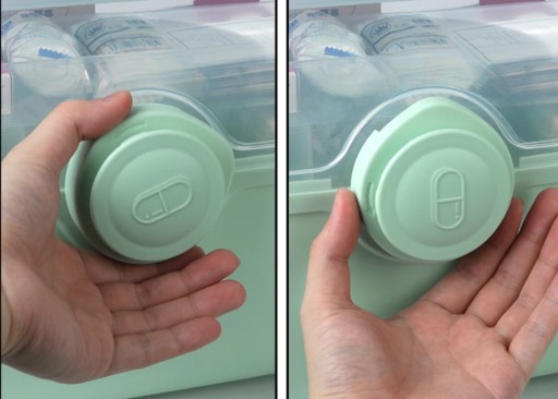 Oprócz funkcji blokady, nasza apteczka posiada dodatkową praktyczną cechę. Wewnątrz pokrętła znajduje się małe, przenośne pudełeczko na leki, które możesz zabrać ze sobą wszędzie, gdziekolwiek się udasz.