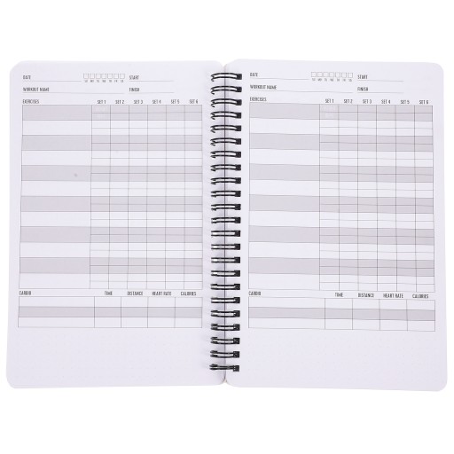 Zeszyt treningowy ma solidne spiralne wiązanie, które ułatwia śledzenie postępów w sprawności.