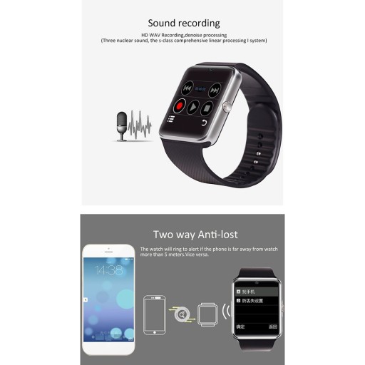✅1 * Smartwatch GT08 z gniazdem i kamerą 2,0 MP do / i telefonów (czarny)