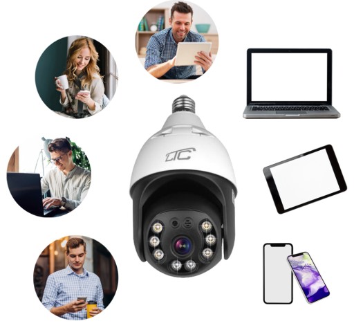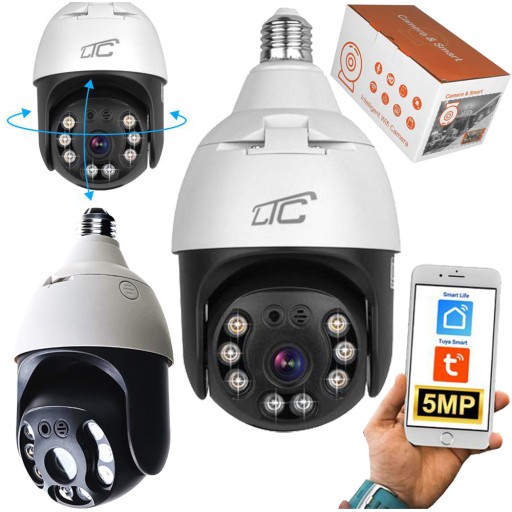 Zewnętrzna kamera obrotowa żarówka E27 Wi-Fi LTC VISION KAM35 ➡️ 5 Mpix ⬅️