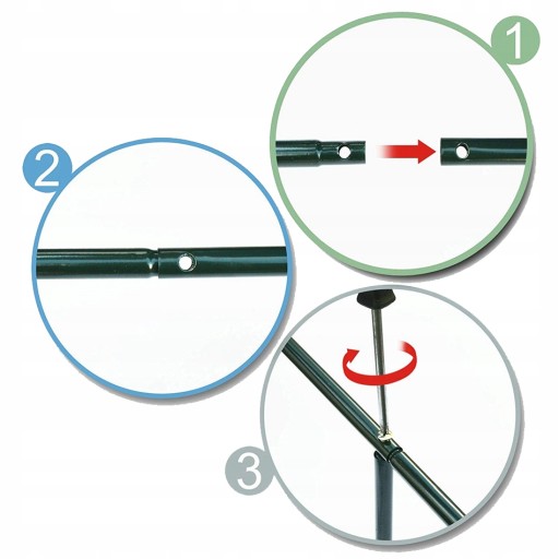 Metalowa stabilna konstrukcja, rurki o średnicy 12 mm. Szybki i bardzo łatwy montaż pozwoli na przenoszenie pergoli lub likwidowanie na okres zimowy. Po złożeniu zajmuje wyjątkowo mało miejsca (opakowanie ma wymiary: 54 x 20 x 4 cm).