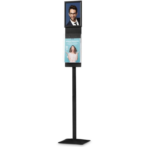 Stojak informacyjny na plakat a4 z kieszenią na ulotki