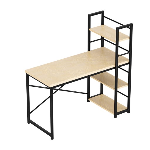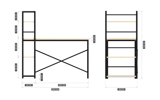 - Blat z wykończeniem o wyglądzie drewna i malowany proszkowo stelaż tworzą interesujący efekt, który doskonale prezentuje się w każdym biurze i pracowni. Biurko z regałem szczególnie dobrze pasuje do wnętrz industrialnych, vintage i loftowych.