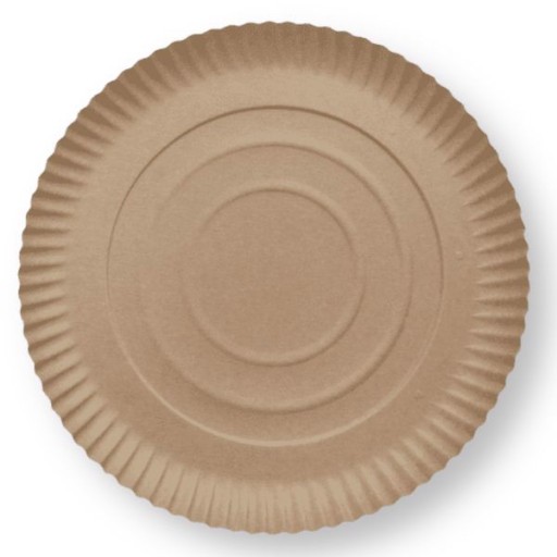 Jednorazowy talerz papierowy o średnicy 28 cm, wykonany z tektury. kolor: kraft.