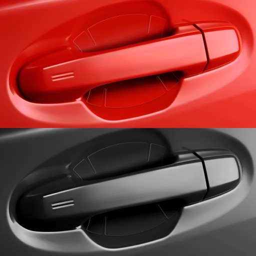 Naklejki zapewniają skuteczną ochronę wnęk klamek przed rysami, kamieniami i innymi uszkodzeniami.