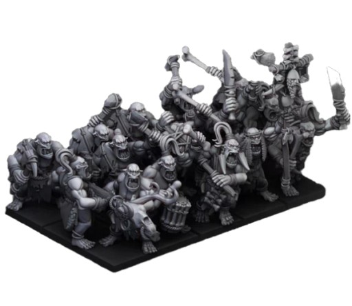 W skład zestawu nie wchodzą podstawki ani ich elementy sceniczne. Możliwość zamiany dwóch szeregowych modeli na „big stick” – dwójkę orków z pniem zakończonym czaszką. Prosimy o stosowną uwagę w komentarzu do zamówienia.