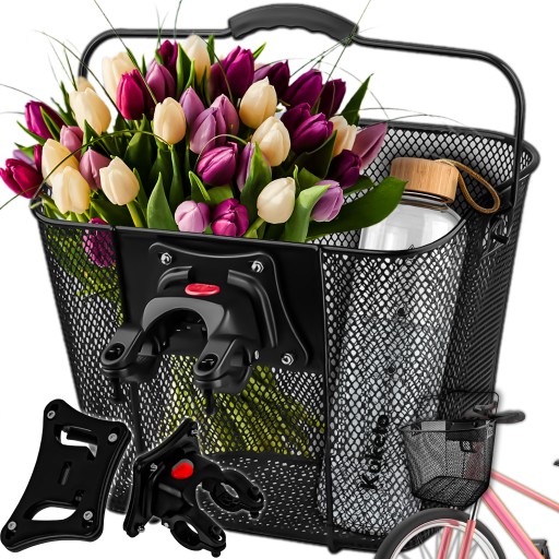 Koszyk przystosowany jest do różnych rozmiarów kół - od 20" do 28", a także do różnych modeli kierownic o średnicy 25 mm. To sprawia, że można zamontować go na większości rowerów, bez konieczności szukania specjalistycznego sprzętu.