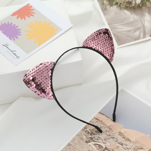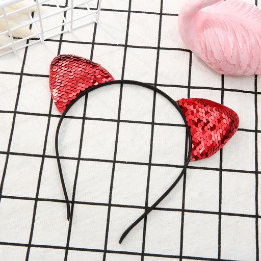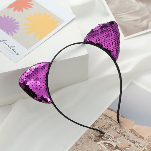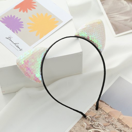 OPASKA DO WŁOSÓW USZY KOTA z cekinami - 12 KOLORÓW DO WYBORU (cena dotyczy 1 sztuki)