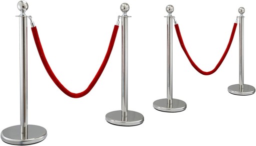Odporność na warunki atmosferyczne - dzięki zastosowaniu stali nierdzewnej, słupki odgradzające są odpowiednie zarówno do użytku wewnętrznego, jak i zewnętrznego. Zestaw jest idealny do restauracji, na koncerty, wystawy, do hoteli oraz kin