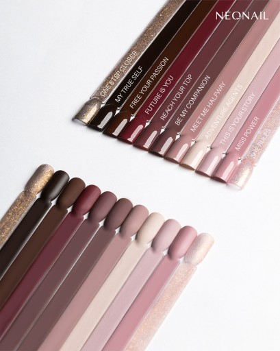 ✔ 11 kobiecych kolorów obejmujących różne odcienie brązów, od ciepłych i klasycznych po wyraziste i błyszczące, transparentne lakiery z drobinkami,