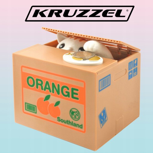 Kotek, pod wpływem nacisku monety na talerzyk, wychyla się z interaktywnej skarbonki i wyciąga łapkę po pieniążek. Kotek zbierający monety to mały cwaniak – szybko łapie monetę i wrzuca ją do pudełka, a następnie wesoło miauczy i chowa się znów do wnętrza pudełka.