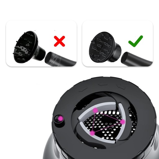 【Łatwy w użyciu】⚡️Po prostu przekręć górną część dyfuzora w kierunku przeciwnym do ruchu wskazówek zegara, aby poszerzyć otwór, wsuń dyszę suszarki do dyfuzora suszarki i zwolnij ją, a następnie przymocuj ją do dmuchawy.