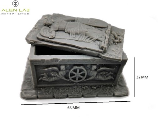 Wysokiej jakości sarkofag wykonany z żywicy przez mistrza rzeźbiarstwa Jacka Świnogę do pomalowania. w skali 28mm