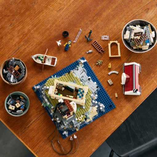 Minifigurki latarnika i żeglarza, łódź wiosłowa do zbudowania i figurki mewy oraz kota uzupełniają cały zestaw. Zestaw składa się z 2065 elementów i jest przeznaczony dla osób powyżej 18 roku życia.