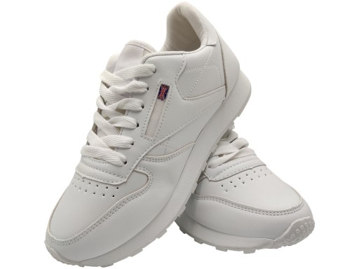 Białe sportowe sneakersy dla kobiet, wykonane z wysokiej jakości materiałów. Doskonale sprawdzą się zarówno na co dzień, jak i podczas aktywności fizycznej. Ich lekka konstrukcja gwarantuje komfort noszenia, a solidna podeszwa zapewnia stabilność i amortyzację dla stóp. Ten modny, klasyczny design doskonale współgra z różnymi stylizacjami, dodając im wyjątkowego uroku. Poza tym świetnie prezentują się na stopie!