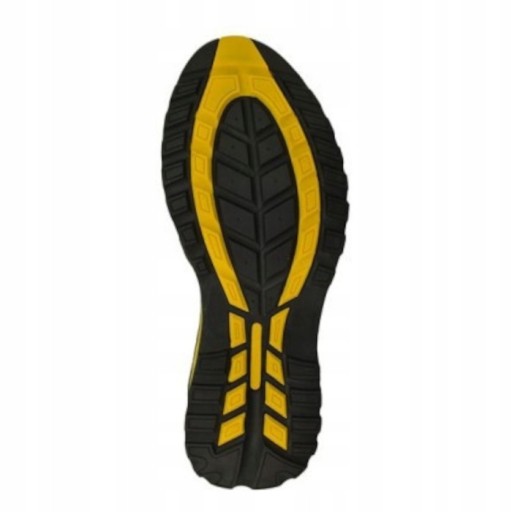 ✅Półbut ochronny o atrakcyjnym sportowym wzornictwie, wykonany ze skóry dwoinowej, zamszowej, w kolorze granatowym ze stylowymi aplikacjami w kolorze żółtym, bez stalowego podnoska