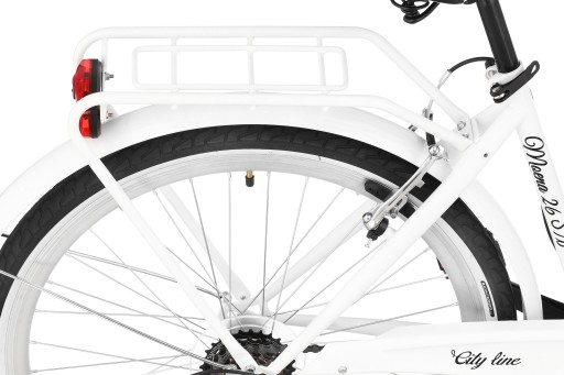 Rower miejski INDIANA Moena S7B 26 cali damski Biały + Koszyk na rower VÖGEL VKS-102WH Stalowy