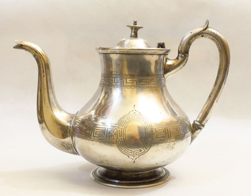 BRACIA BUCH WARSZAWA DZBANEK DO KAWY IMBRYK Z GRAWEREM I MEDALIONEM