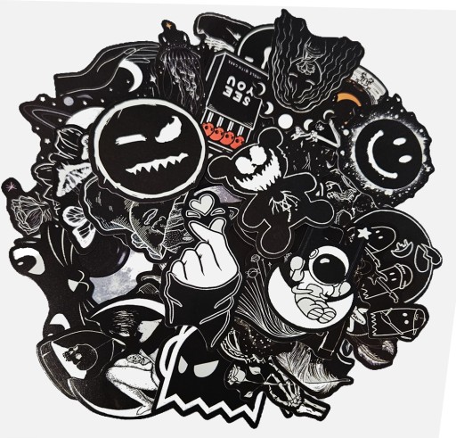 CZARNE NAKLEJKI WODOODPORNE STICKERBOMB WLEPKI TEMATYCZNE 50 szt