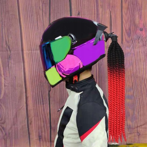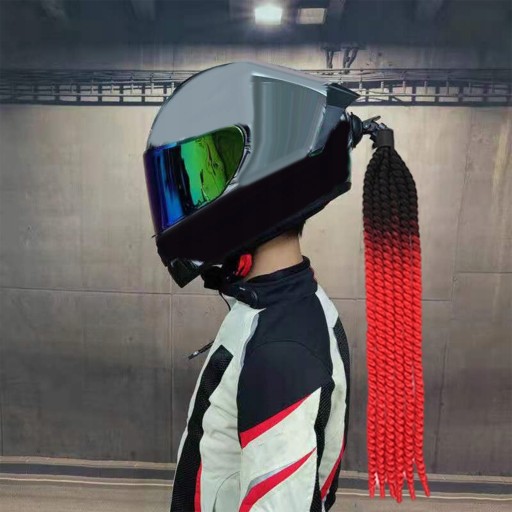 Warkocze Kasku Z Przyssawką Peruka Cosplay Na Rower Rowerowy Czarny Czerwony