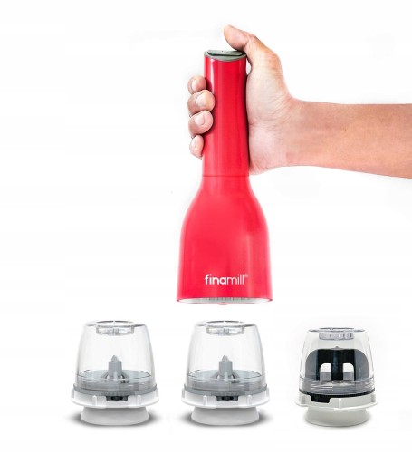 - Młynek FinaMill w kolorze czerwonym na AKUMULATOR (ładowany kablem USB)