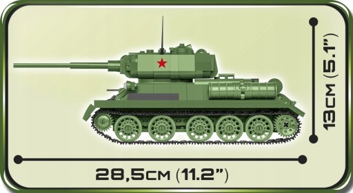 Zastosowanie aż 668 klocków umożliwiło wyjątkowo wierne odwzorowanie bryły pojazdu. Zastosowano mniejsze gąsienice, zwężono kadłub, ściana przednia pancerza została wygładzona. Wieża, konstrukcja armaty i błotniki zostały zmodyfikowane. Pod klapą serwisową znajduje się atrakcyjnie wyglądająca atrapa silnika. Model posiada sprawną trakcję gąsienicową, obrotową wieżę, ruchome działo i otwierany właz. Do zestawu dołączone są klocki z oznaczeniami radzieckimi i polskimi do wyboru. Całość uzupełnia figurka czołgisty wyposażona w pistolet osobisty i nowy rodzaj hełmofonu. W czytelnej instrukcji zamieszczony jest spis klocków oraz statystyki, które możesz wykorzystać w darmowej Historycznej Grze Bitewnej COBI.