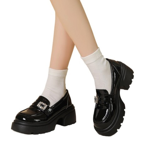 WYGODNE GRUBA PODESZWA CZARNE SKÓRZANE MOKASYNY DAMSKIE PÓŁBUTY Płeć kobieta