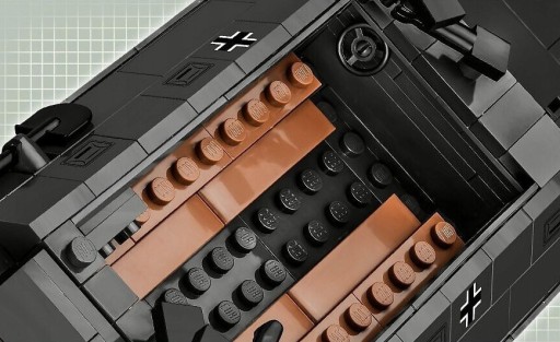 Transporter opancerzony Sd.Kfz.251 to idealny zestaw zarówno dla małych jak i dużych fanów klocków konstrukcyjnych. Świetnie sprawdzi się zarówno na półce, jak i klockowej dioramie. Starsi fani klocków docenią model jako egzemplarz kolekcjonerski oraz inspirację do budowy realistycznych dioram lub własnych konstrukcji. Nieco bardziej doświadczeni konstruktorzy znajdą w tym modelu wręcz ogromne pole do modyfikacji. Armia niemiecka dysponowała zawrotną ilością 23 oficjalnych wersji transportera, przeznaczonymi do bardzo różnych zadań. Z łatwością można zdemontować karabiny i pokusić się o stworzenie wersji wsparcia ogniowego z działem lub pojazdu zaplecza technicznego. Dorobienie plandeki lub zadaszenia to z kolei droga do stworzenia wersji sanitarnej.