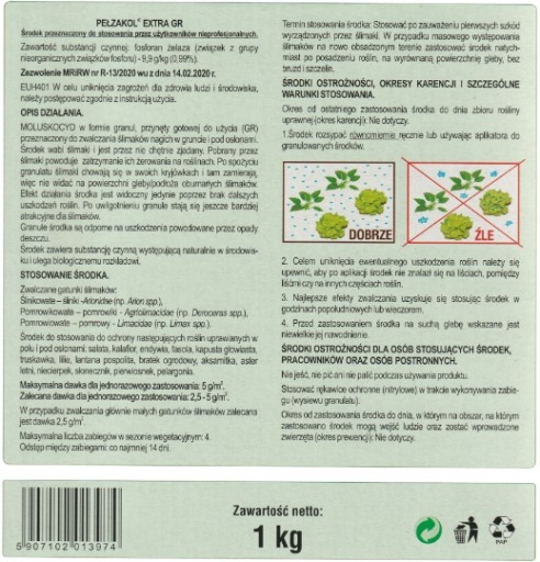 Pełzakol Extra GR bio na ślimaki nagie zawiera substancję czynną, która naturalnie występuje w przyrodzie. Preparat jest odporny na wilgoć - po uwilgotnieniu staje się jeszcze bardziej atrakcyjny dla szkodników.