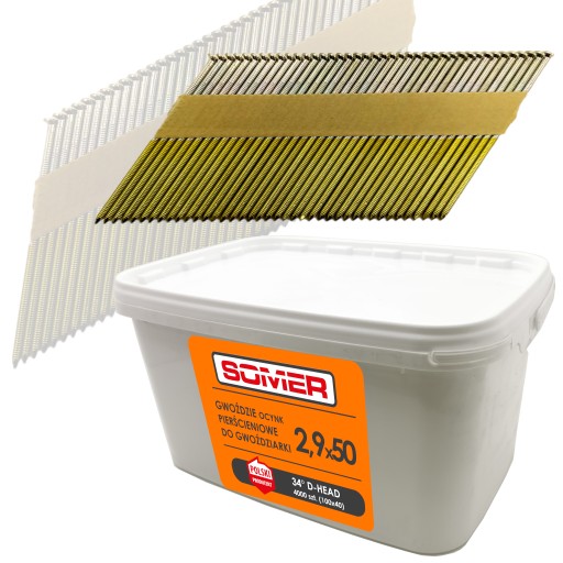 Gwoździe do gwoździarki budowlane 2,9x50 pierścieniowe 4000 sztuk.