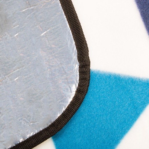 Koc piknikowy posiada aż trzy warstwy: miękki polar, wypełnienie pianką, folię izolująca. Dzięki temu zostało zapewnione zarówno izolowanie od zimnego podłoża jak i wodoodporność. Dzięki temu rozwiązaniu śmiało można zabierać ze sobą koc na plażę jak i na trawiastą polanę.