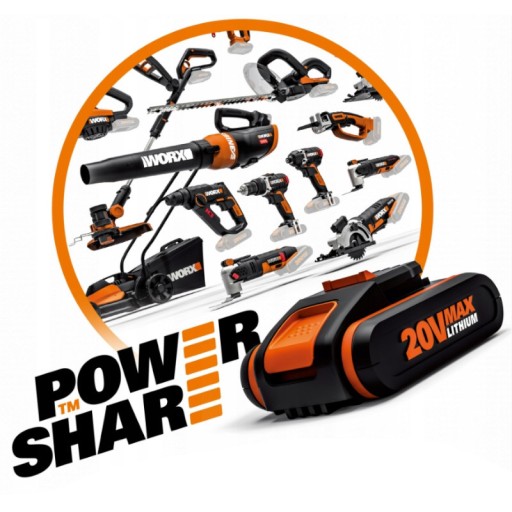 Bateria PowerShare, która napędza Landroida, pasuje do wszystkich bezprzewodowych narzędzi Worx: wiertarek, pił, dmuchaw, wyrzynarek, podkaszarek i wielu innych.