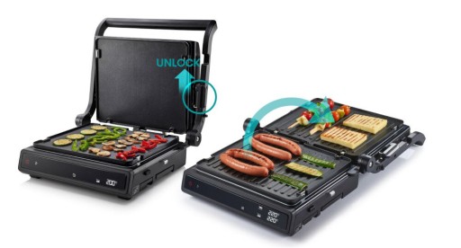 Dzięki blokadzie bezpieczeństwa możesz bez problemu przenosić grill lub przechowywać go w pozycji pionowej, aby zaoszczędzić miejsce w kuchni. Kiedykolwiek będziesz go potrzebował, po prostu przenieś go w swoje miejsce - na zewnątrz, ze sobą na wakacje lub po prostu zostaw go w kuchni i ustaw w pozycji poziomej. Następnie ustaw żądaną temperaturę, czas i ciesz się wspaniałymi wynikami!