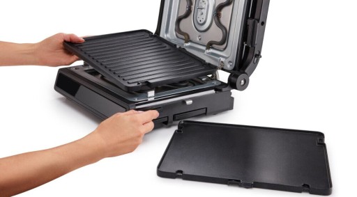 Dwustronne płyty pozwalają poznać prawdziwą wielofunkcyjność grilla. Wyprofilowana powierzchnia przeznaczona jest do przygotowywania kiełbasek, ryb, warzyw lub do pieczenia tortilli czy panini. Dla soczystych steków i burgerów będziesz preferował gładką powierzchnię. Możesz również użyć tej powierzchni do gotowania jajek lub omletów. Płyty są również zdejmowane i można je łatwo myć w zmywarce.