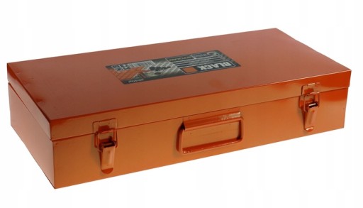 Solidna walizka metalowa z rączką mieszcząca wszystkie elementy zestawu.