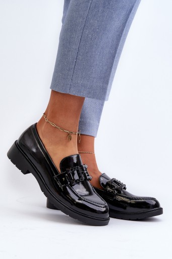 MOKASYNY DAMSKIE LAKIEROWANE Z OZDOBĄ S.BARSKI HY371A CZARNE 41