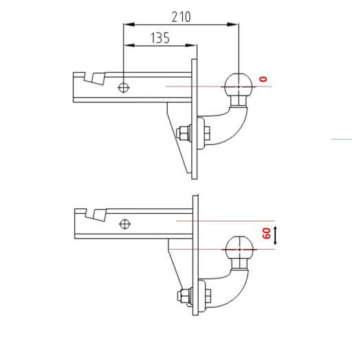 - Wysokość kuli względem środka adaptera: 0mm, -60mm