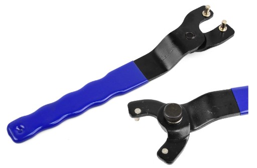 Regulowany klucz przeznaczony do dokręcania/odkręcania nakrętki mocującej tarcze w szlifierce kątowej lub bruzdownicy.
