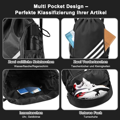 Plecak o dużej pojemności: pomieści większość artykułów sportowych i codziennych, takich jak piłki do koszykówki, odzież sportowa, sprzęt pływacki, ręczniki sportowe, podręczniki, buty, tablety itp. Plecak o dużej pojemności doskonale organizuje Twoje rzeczy i maksymalizuje miejsce do przechowywania tego, czego potrzebujesz, gdy jesteś poza domem.