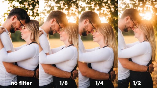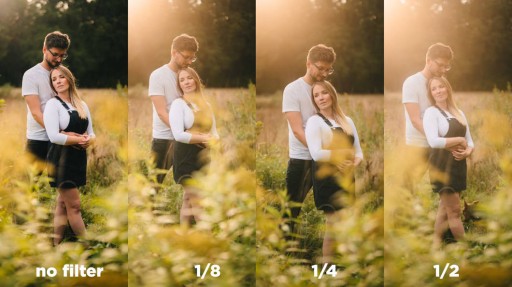Wykonane ze szkła optycznego, filtry w tym zestawie mają stopnie wytrzymałości 1/2, 1/4 i 1/8, efekt filtra staje się około dwa razy silniejszy wraz ze wzrostem liczby stopni.