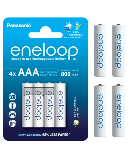 Wybierając eneloop zmniejszasz swoje zużycie plastiku: Wszystkie opakowania eneloop są wykonane w 100% z papieru pozyskanego z odpowiedzialnych źródeł
