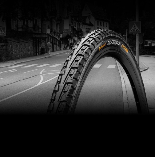 - Opona bardzo uniwersalna, bieżnik wykonano z materiału o podwyższonej odporności na ścieranie, co zapewnia efektywną pracę w trudnych warunkach. Duże przebiegi to domena opon Continental Ride Tour, system Extra Puncture Belt zapewni bezpieczną jazdę po twardych podłożach.